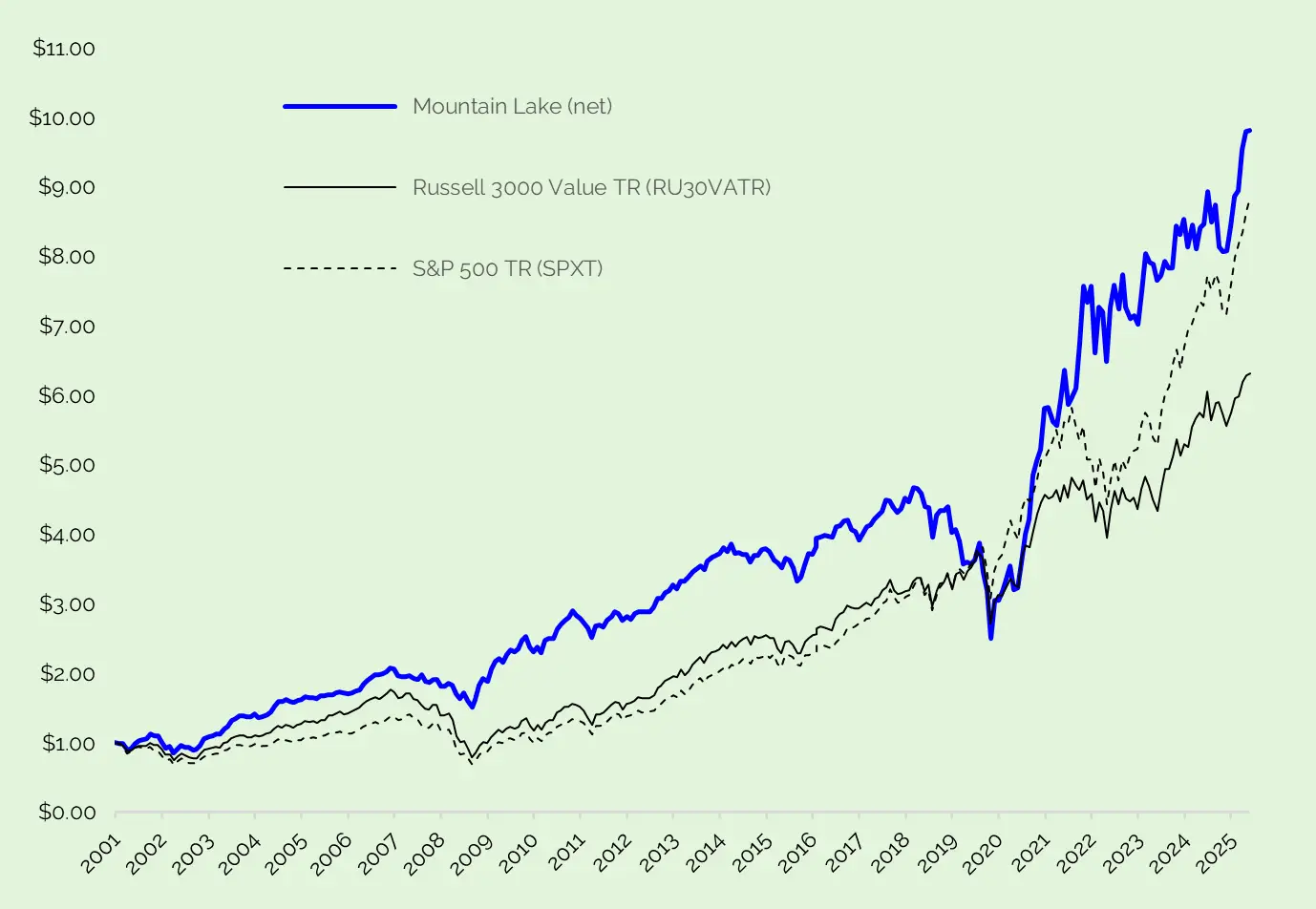 We have cumulatively outperformed the Russell 3000 Value and S&P 500, net of fees, since our inception in 2001.